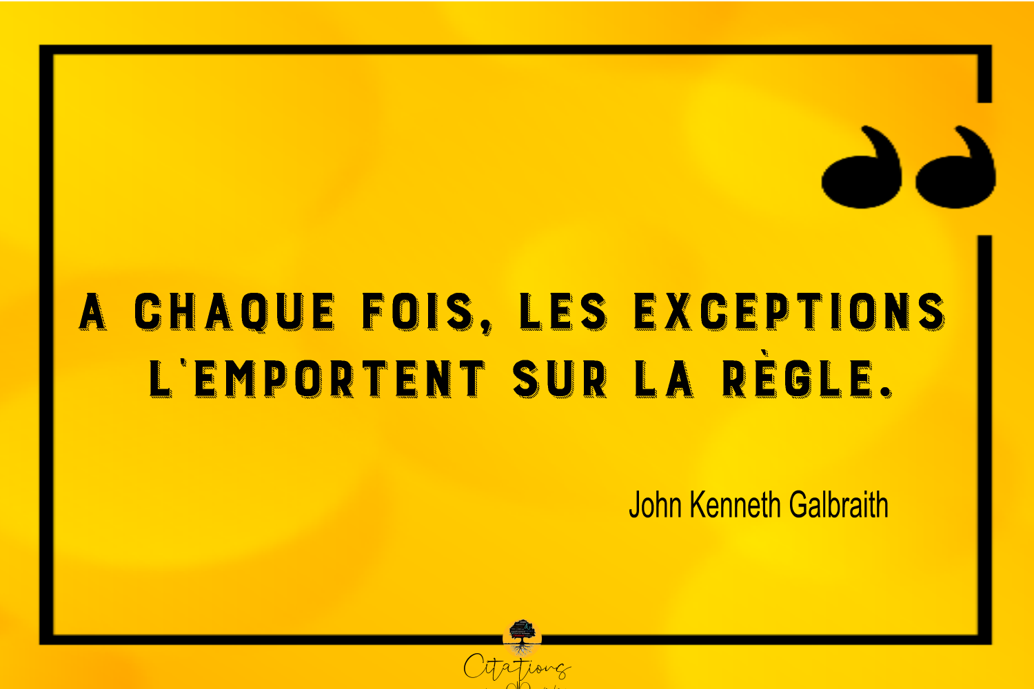 Citations A chaque fois, les exceptions l’emportent sur la règle. 23 Share A chaque fois, les exceptions l’emportent sur la règle. John Kenneth Galbraith 23 Share