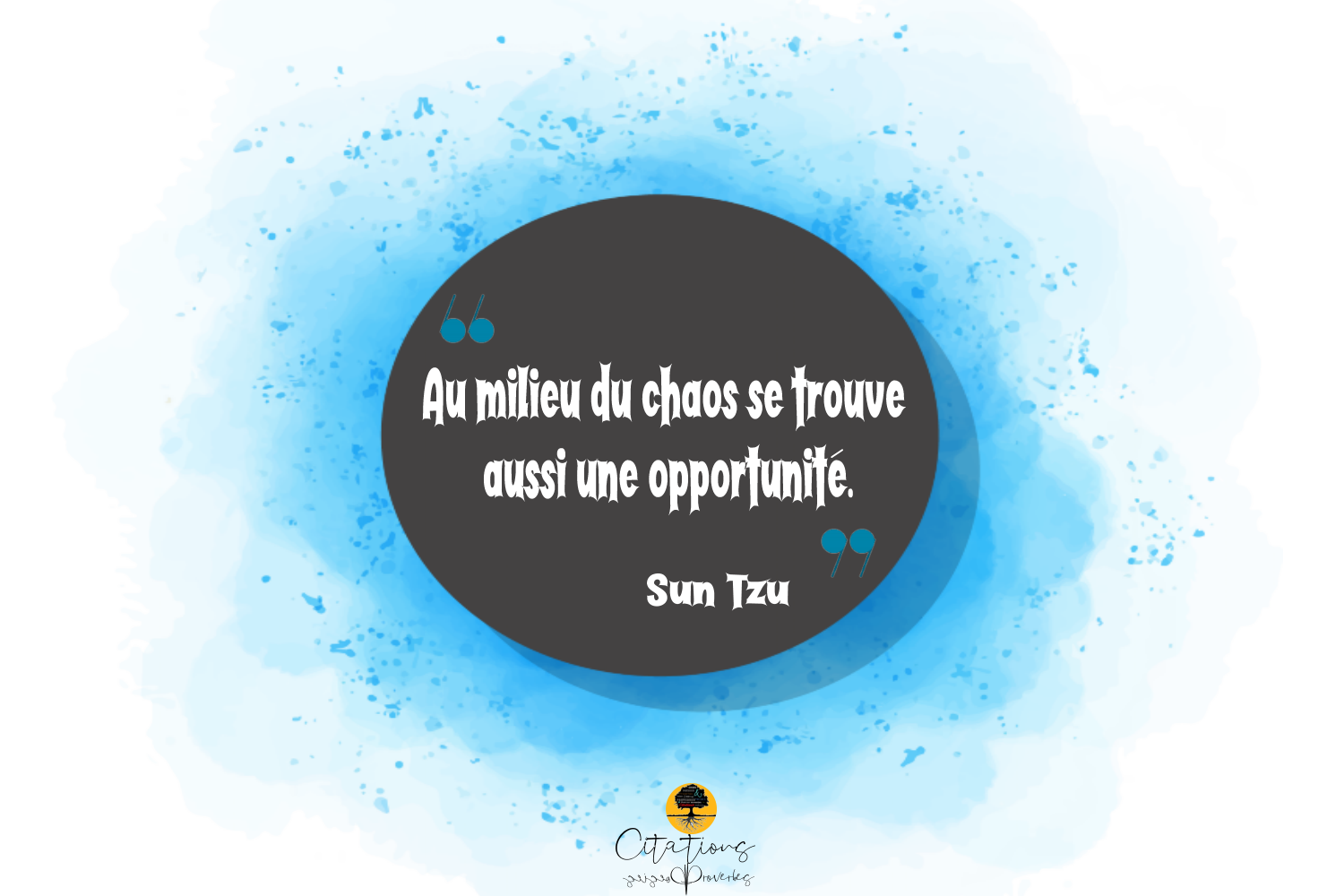 Citations Au milieu du chaos se trouve aussi une opportunité. 859 Share Au milieu du chaos se trouve aussi une opportunité. Sun Tzu 859 Share