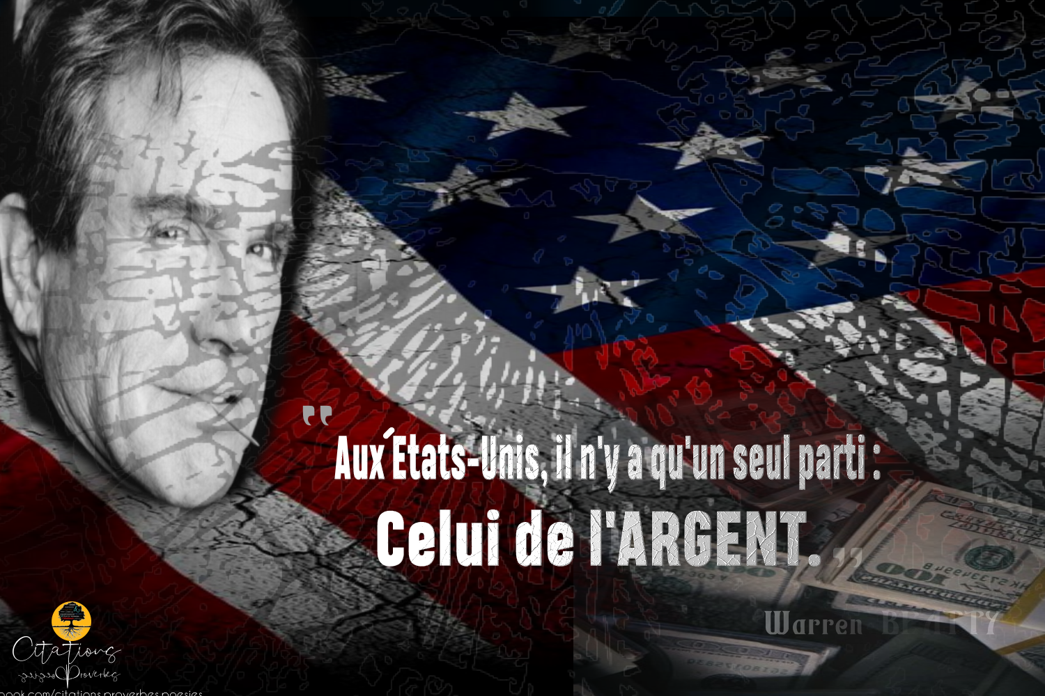 Citations Aux Etats-Unis, il n’y a qu’un seul parti : Celui de l’argent. 42 Share Aux Etats-Unis, il n’y a qu’un seul parti : Celui de l’argent. Warren BEATTY 42 Share