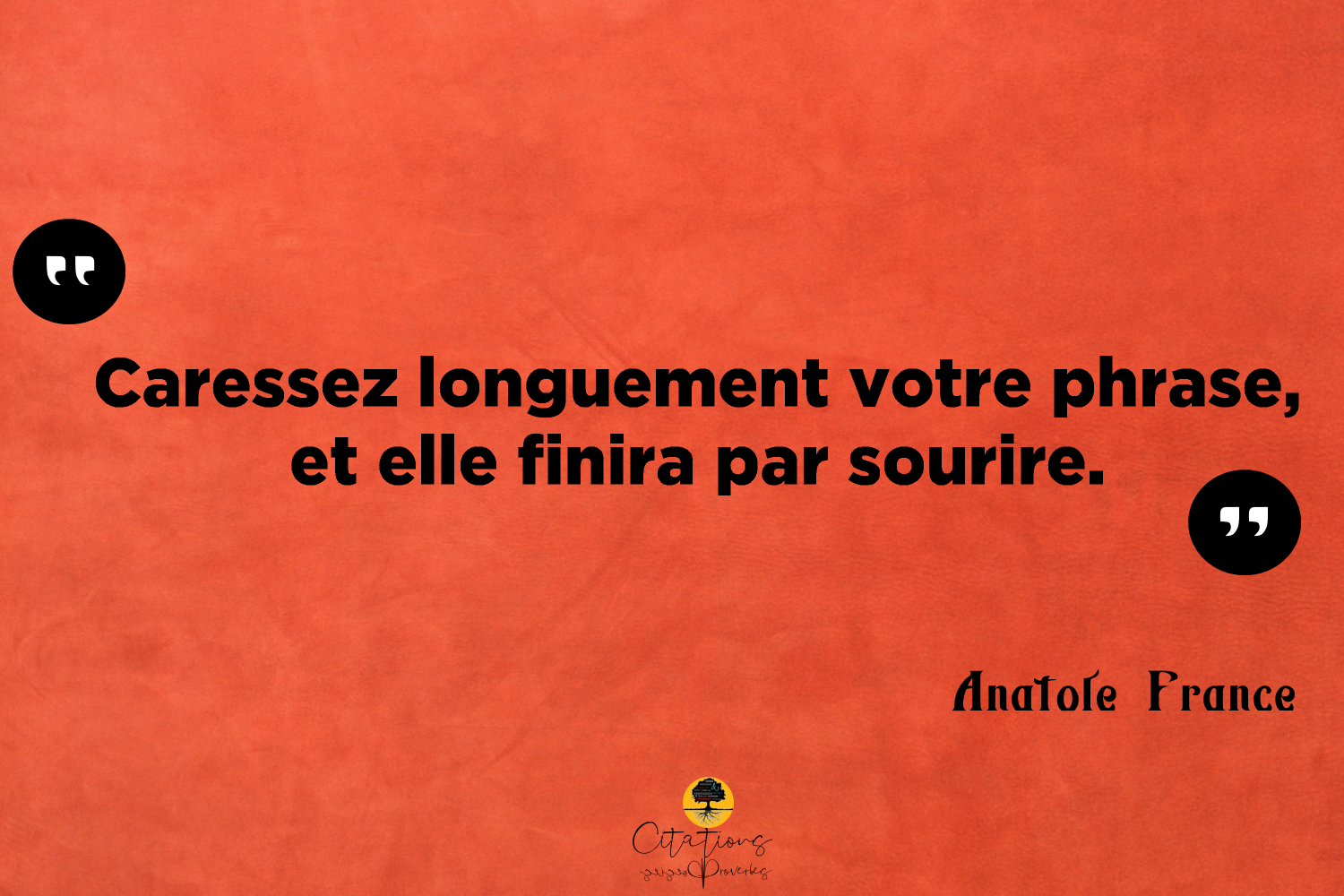 Citations Caressez longuement votre phrase, et elle finira par son éclat. 25 Share Caressez longuement votre phrase, et elle finira par son éclat. Anatole France 25 Share