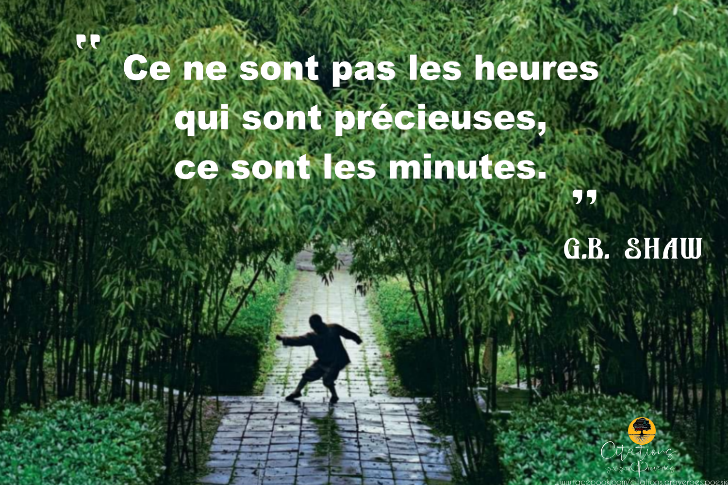 Citations Ce ne sont pas les heures qui sont précieuses, ce sont les minutes. 39 Share Ce ne sont pas les heures qui sont précieuses, ce sont les minutes. G.B. SHAW 39 Share