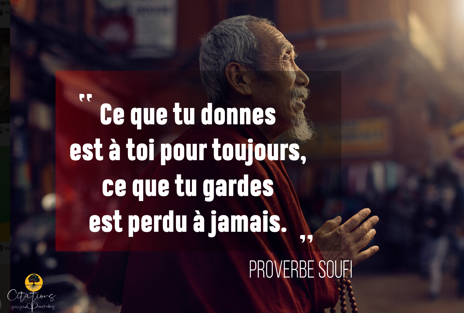 Ce que tu donnes est à toi pour toujours, ce que tu gardes est perdu à jamais.