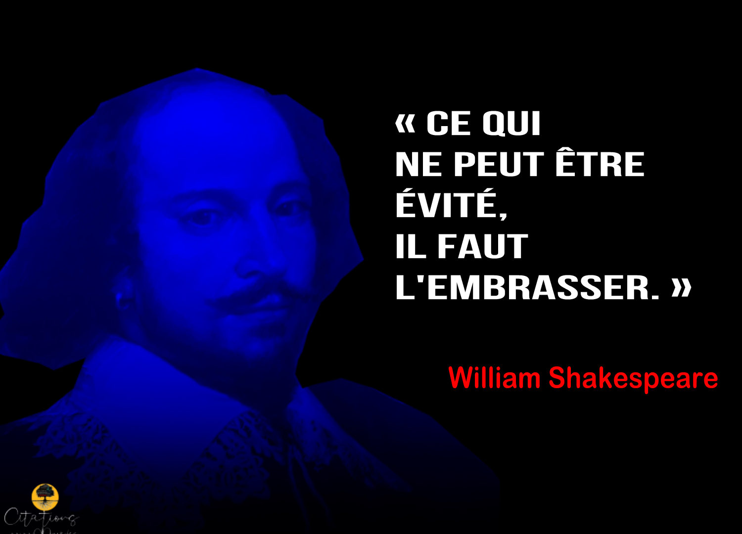 Citations Ce qui ne peut être évité, il faut l’embrasser. Shakespeare 351 Share « Ce qui ne peut être évité, il faut l’embrasser. » William Shakespeare 351 Share