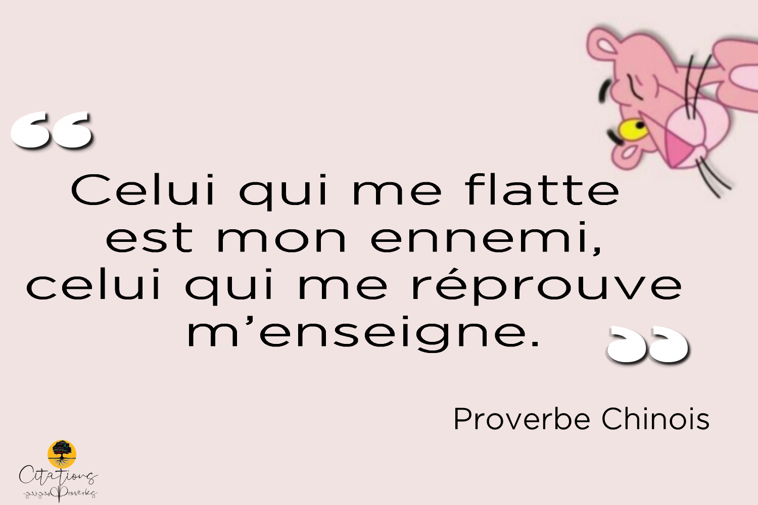 Proverbes Celui qui me flatte est mon ennemi, celui qui me réprouve m’enseigne. 78 Share Celui qui me flatte est mon ennemi, celui qui me réprouve m’enseigne. Proverbe Chinois 78 Share