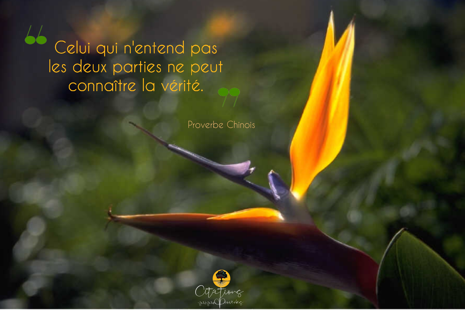 Proverbes Celui qui n’entend pas les deux parties ne peut connaître la vérité. 42 Share Celui qui n’entend pas les deux parties ne peut connaître la vérité. Proverbe Chinois 42 Share