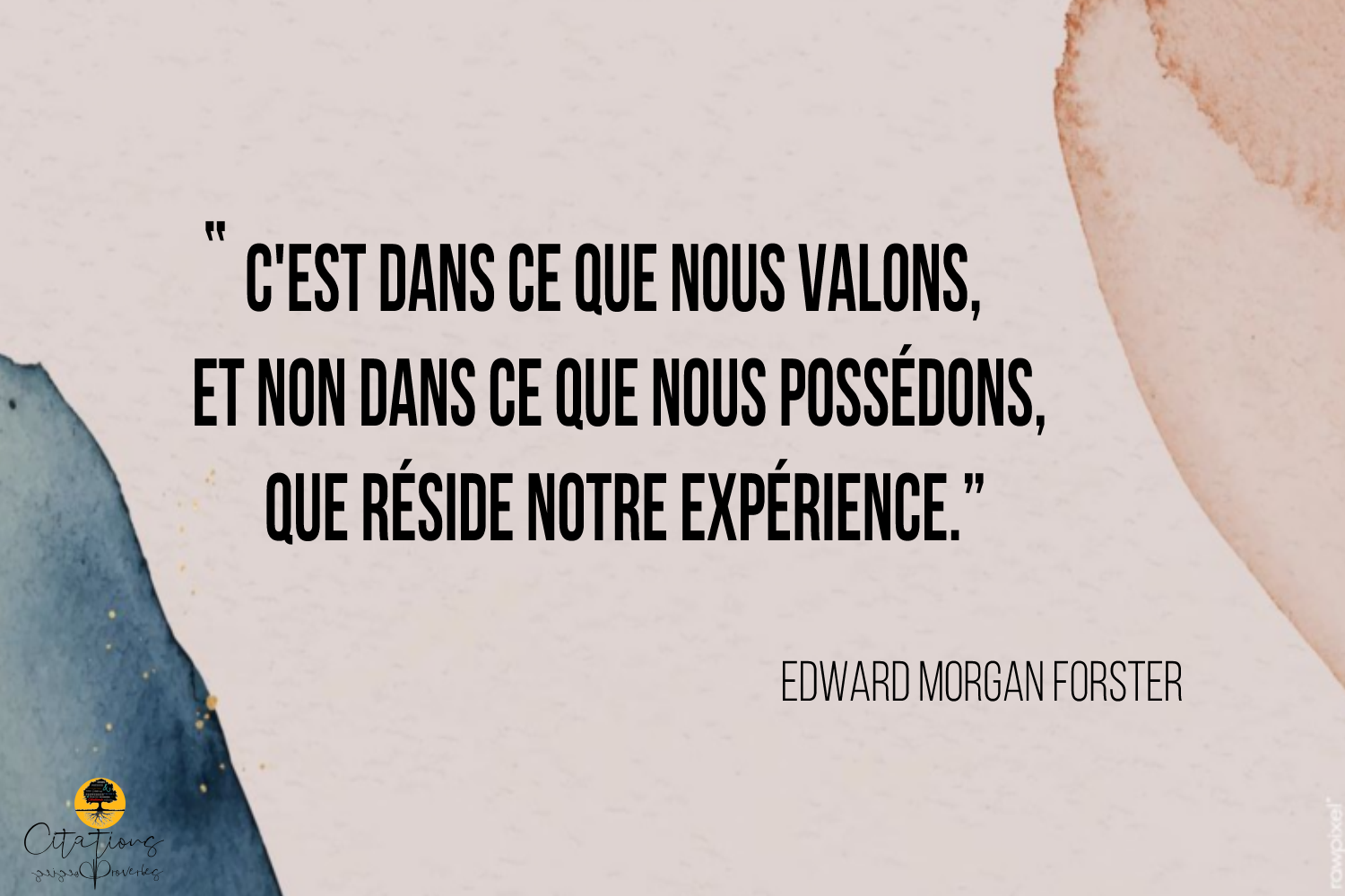 C’est dans ce que nous valons, et non dans ce que nous possédons, que réside notre expérience.