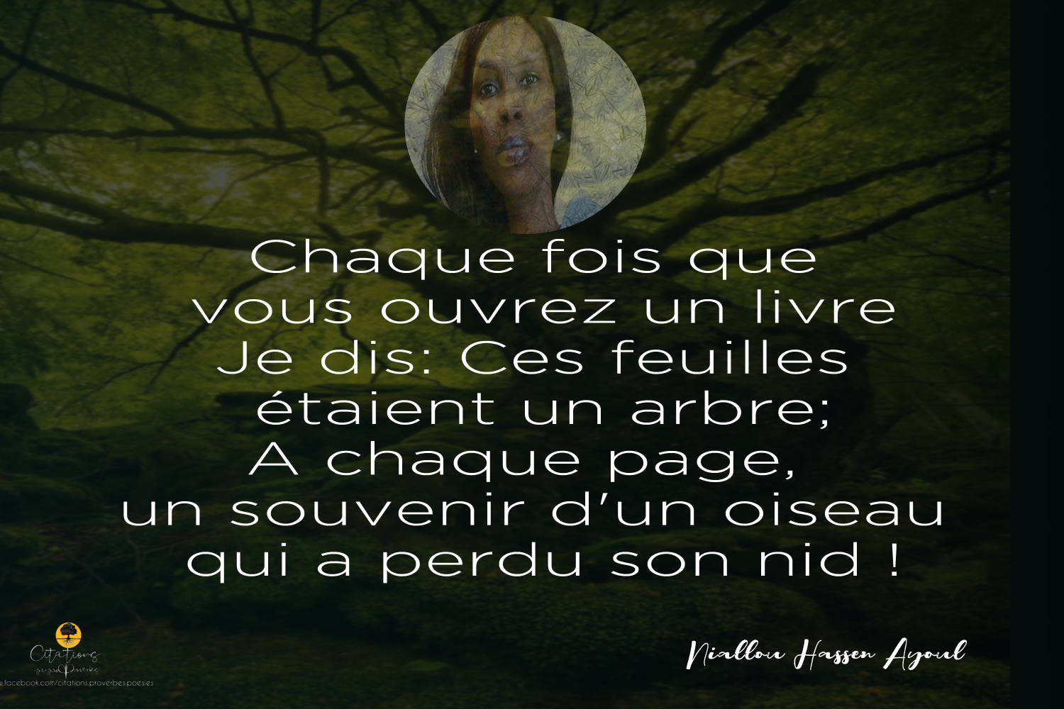 Chaque fois que vous ouvrez un livre Je dis: Ces feuilles étaient un arbre; A chaque page, un souvenir d’un oiseau qui a perdu son nid !