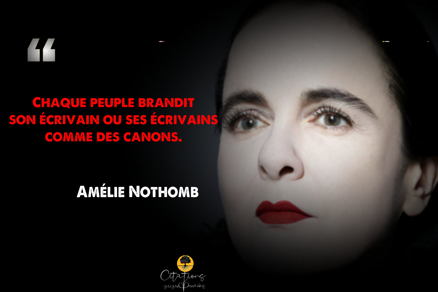 Citations Chaque peuple brandit son écrivain ou ses écrivains comme des canons. 57 Share Chaque peuple brandit son écrivain ou ses écrivains comme des canons. Amélie Nothomb 57 Share