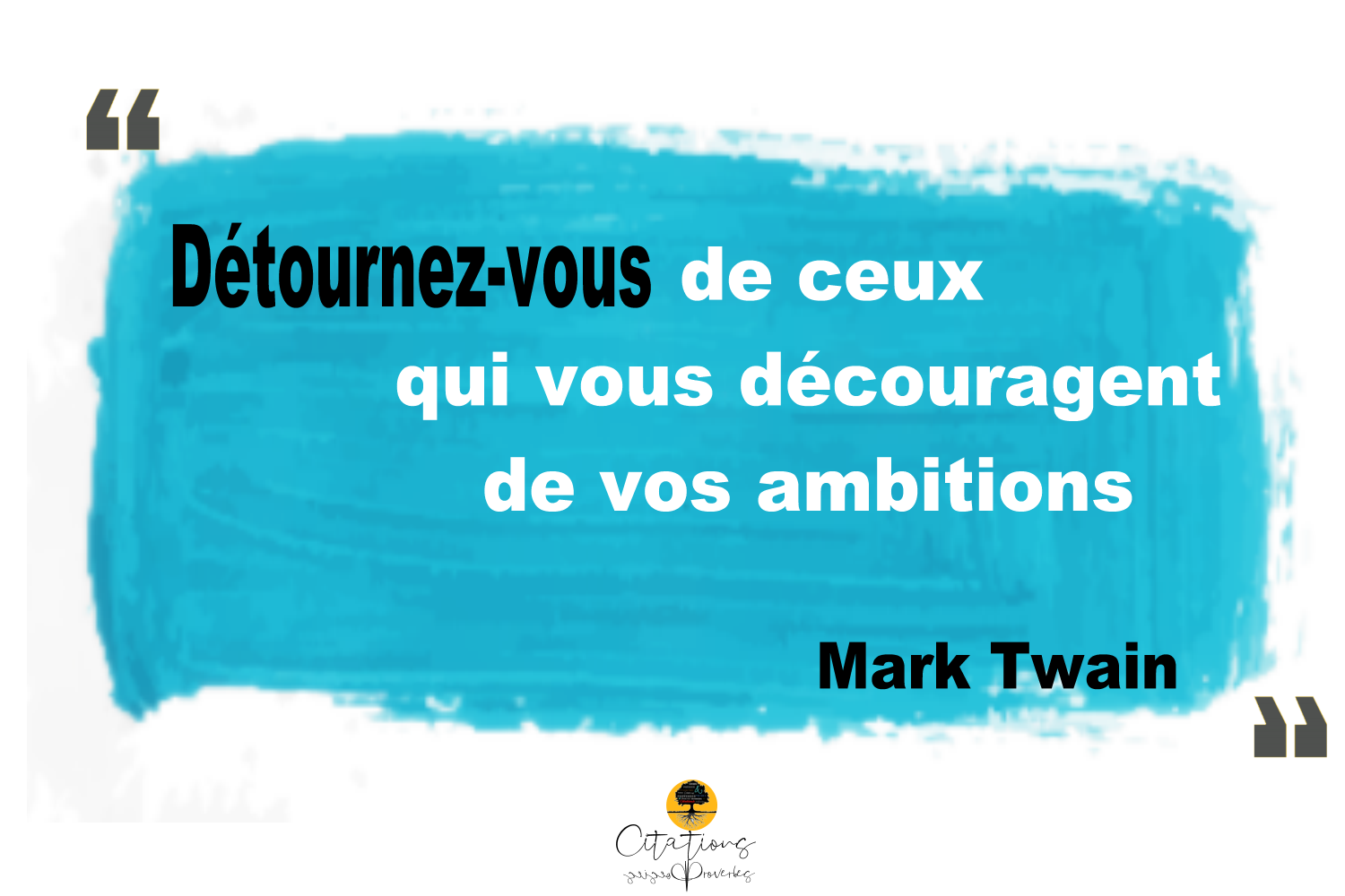 Citations Détournez-vous de ceux qui vous découragent… 94 Share Détournez-vous de ceux qui vous découragent de vos ambitions. Mark Twain 94 Share