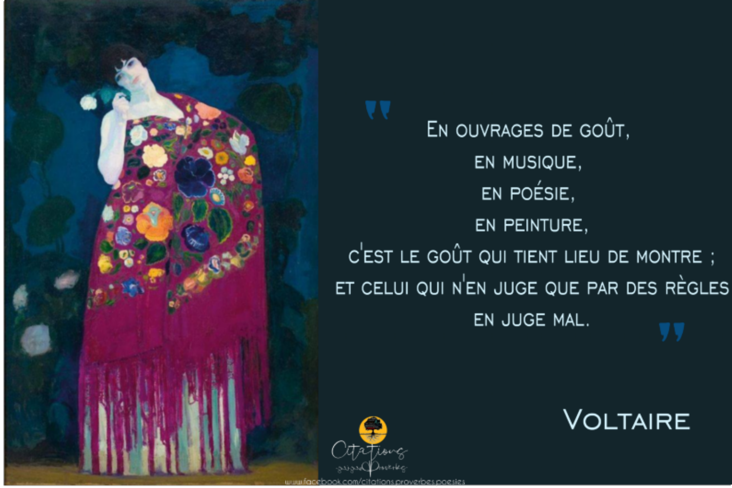 En ouvrages de goût, en musique, en poésie, en peinture, c’est le goût qui tient lieu de montre .