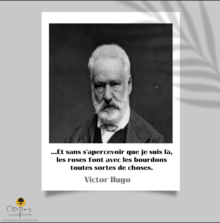Citations …Et sans s’apercevoir que je suis là…. Victor Hugo 159 Share …Et sans s’apercevoir que je suis là, les roses font avec les bourdons toutes sortes de choses. Victor Hugo 159 Share