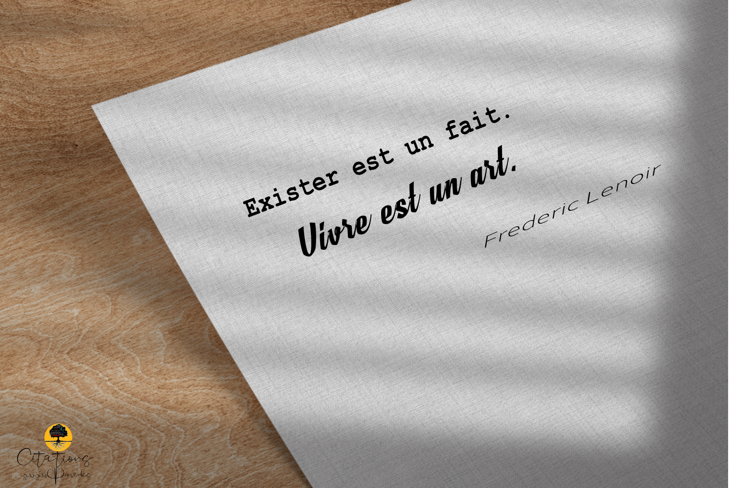 Citations Exister est un fait. Vivre est un art. 368 Share Exister est un fait. Vivre est un art. Frederic Lenoir 368 Share