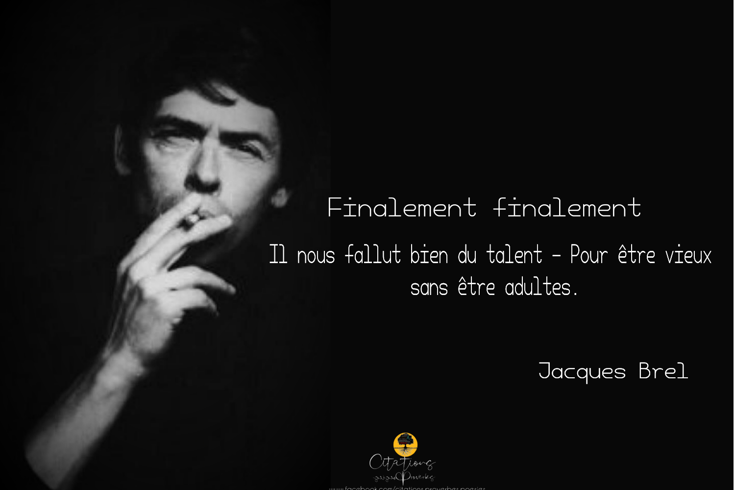 Poésie Finalement finalement.. 129 Share Finalement finalement Il nous fallut bien du talent – Pour être vieux sans être adultes. Jacques Brel 129 Share