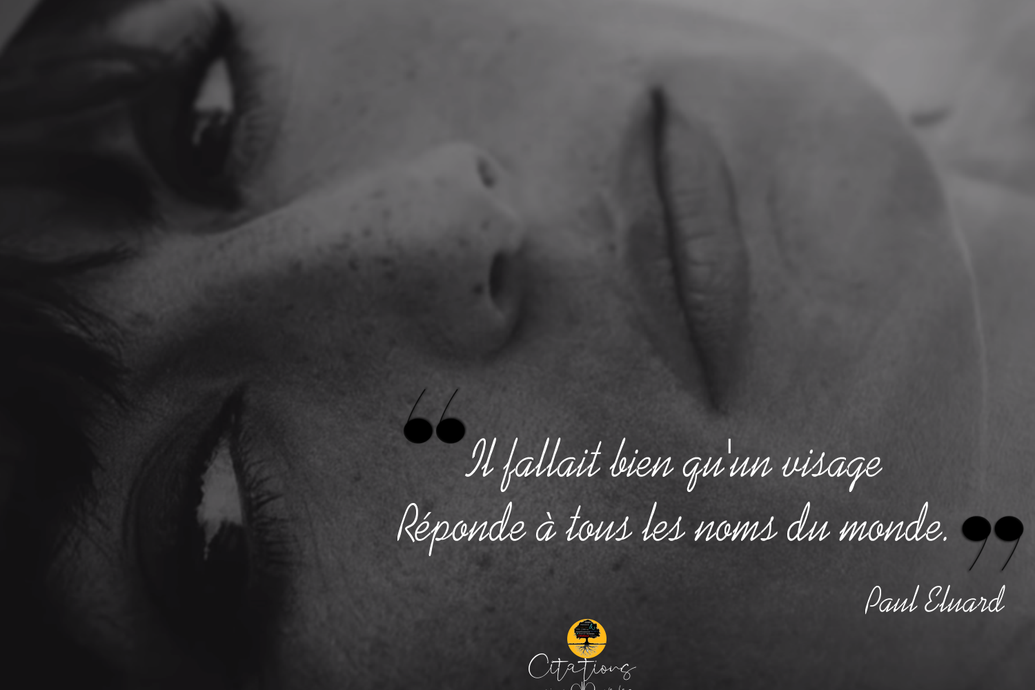Poésie Il fallait bien qu’un visage Réponde à tous les noms du monde. 588 Share Il fallait bien qu’un visage Réponde à tous les noms du monde. Paul Eluard 588 Share
