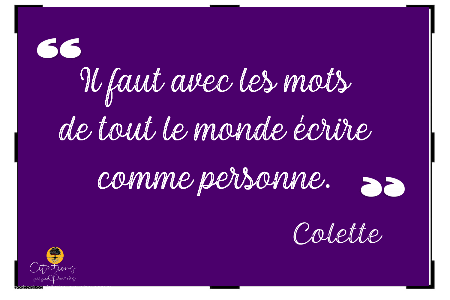Citations Il faut avec les mots de tout le monde écrire comme personne. 338 Share Il faut avec les mots de tout le monde écrire comme personne. Colette 338 Share