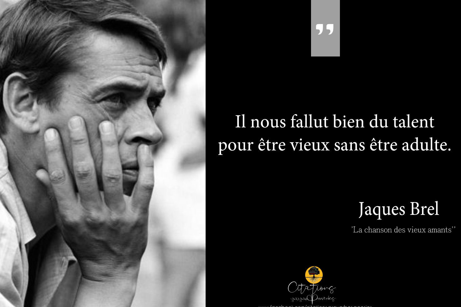 Poésie Il nous fallut bien du talent pour être vieux sans être adulte. 141 Share Il nous fallut bien du talent pour être vieux sans être adulte. Jaques Brel 141 Share