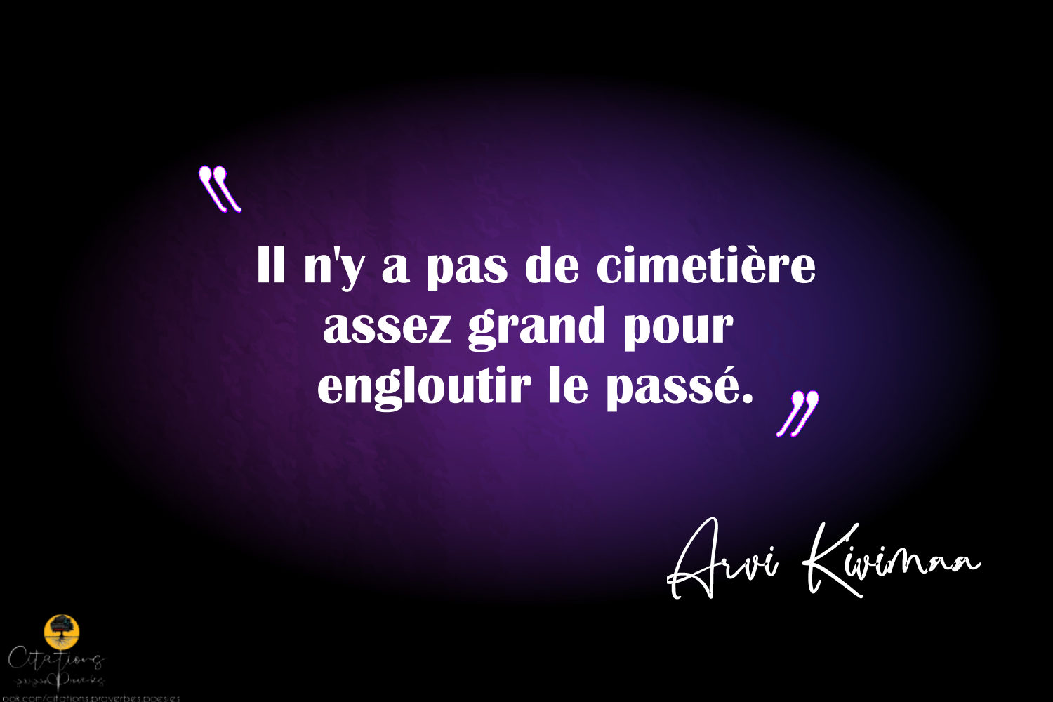 Citations Il n’y a pas de cimetière assez grand pour engloutir le passé. 14 Share ” Il n’y a pas de cimetière assez grand pour engloutir le passé.” Arvi Kivimaa 14 Share