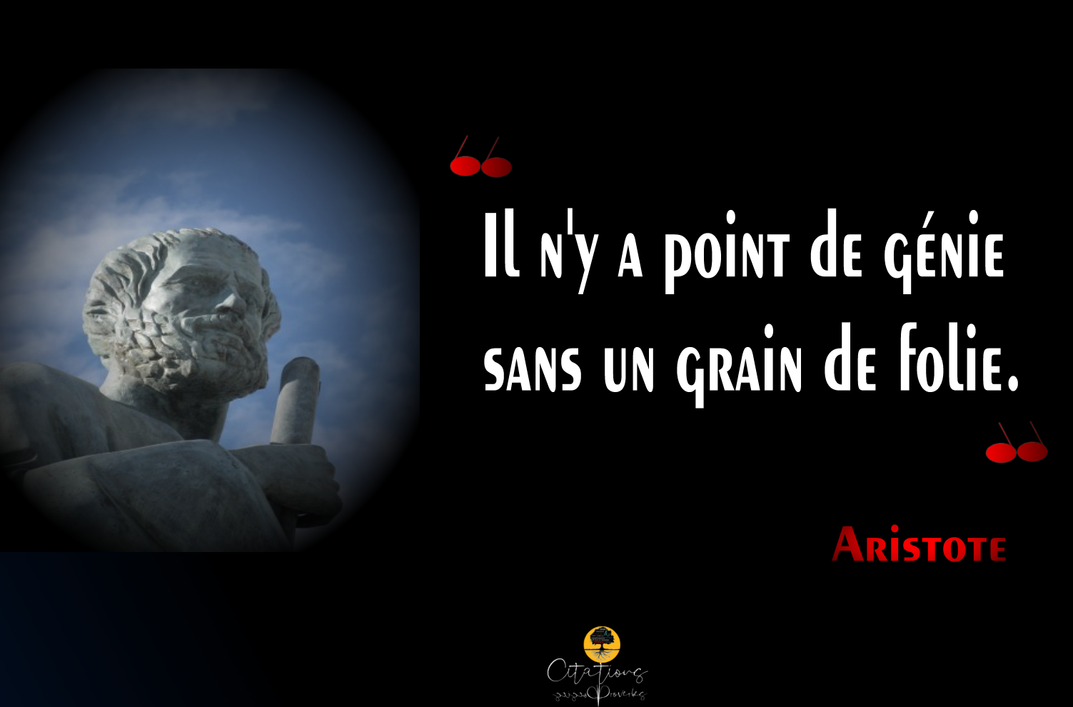 Citations Il n’y a point de génie sans un grain de folie. 196 Share Il n’y a point de génie sans un grain de folie. Aristote 196 Share