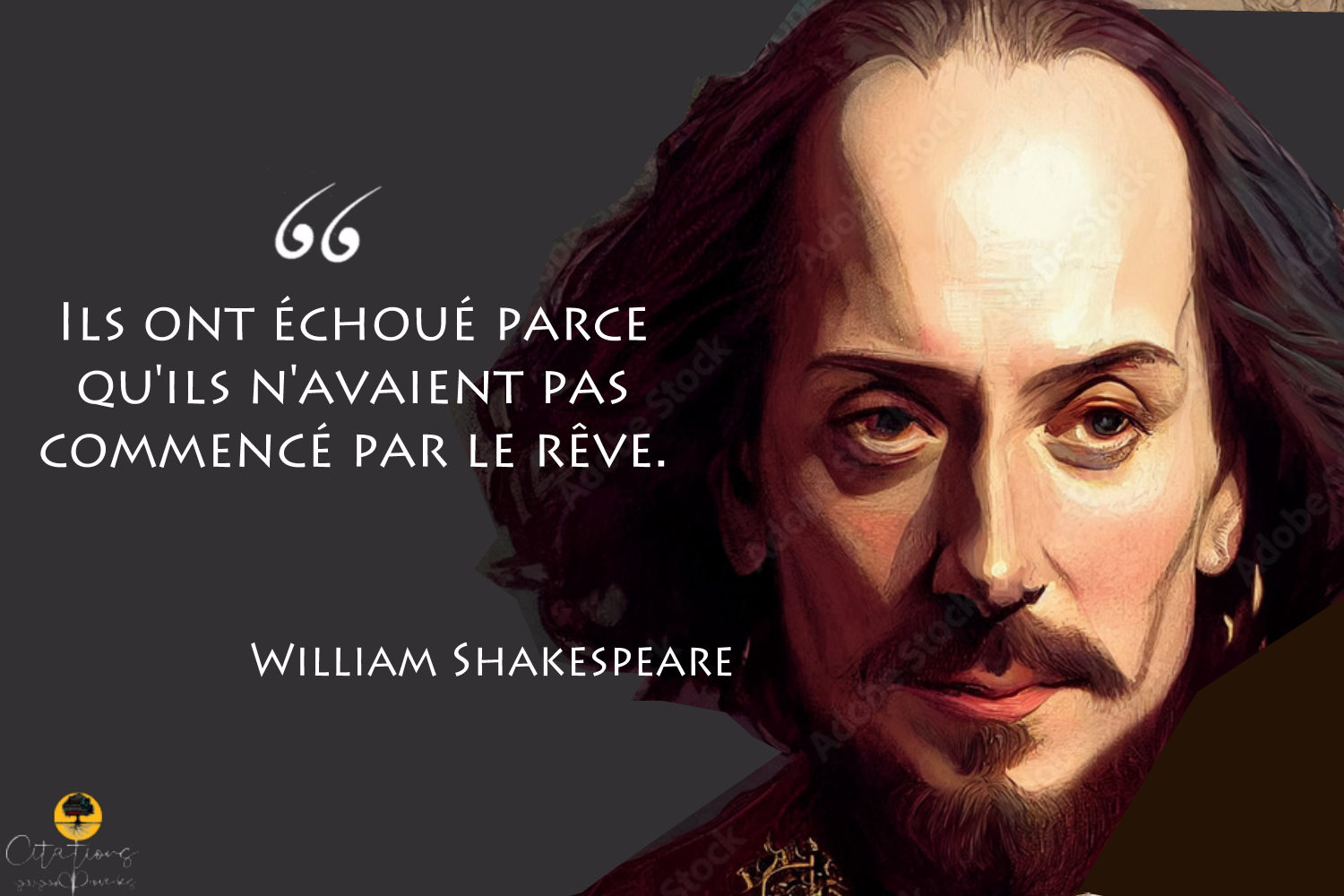 Citations ……ils n’avaient pas commencé par le rêve. William Shakespeare 424 Share Ils ont échoué parce qu’ils n’avaient pas commencé par le rêve. William Shakespeare 424 Share