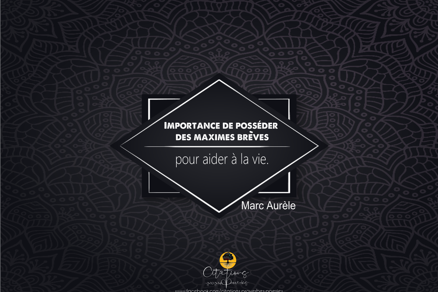 Citations Importance de posséder des maximes brèves… 26 Share Importance de posséder des maximes brèves pour aider à la vie. Marc Aurèle 26 Share