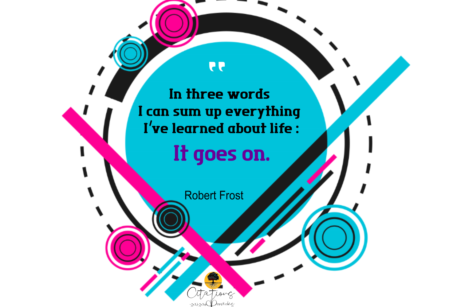 Poésie In three words ….En trois mots…It goes on 18 Share En trois mots, je peux résumer tout ce que j’ai appris sur la vie: It goes on Robert Frost 18 Share