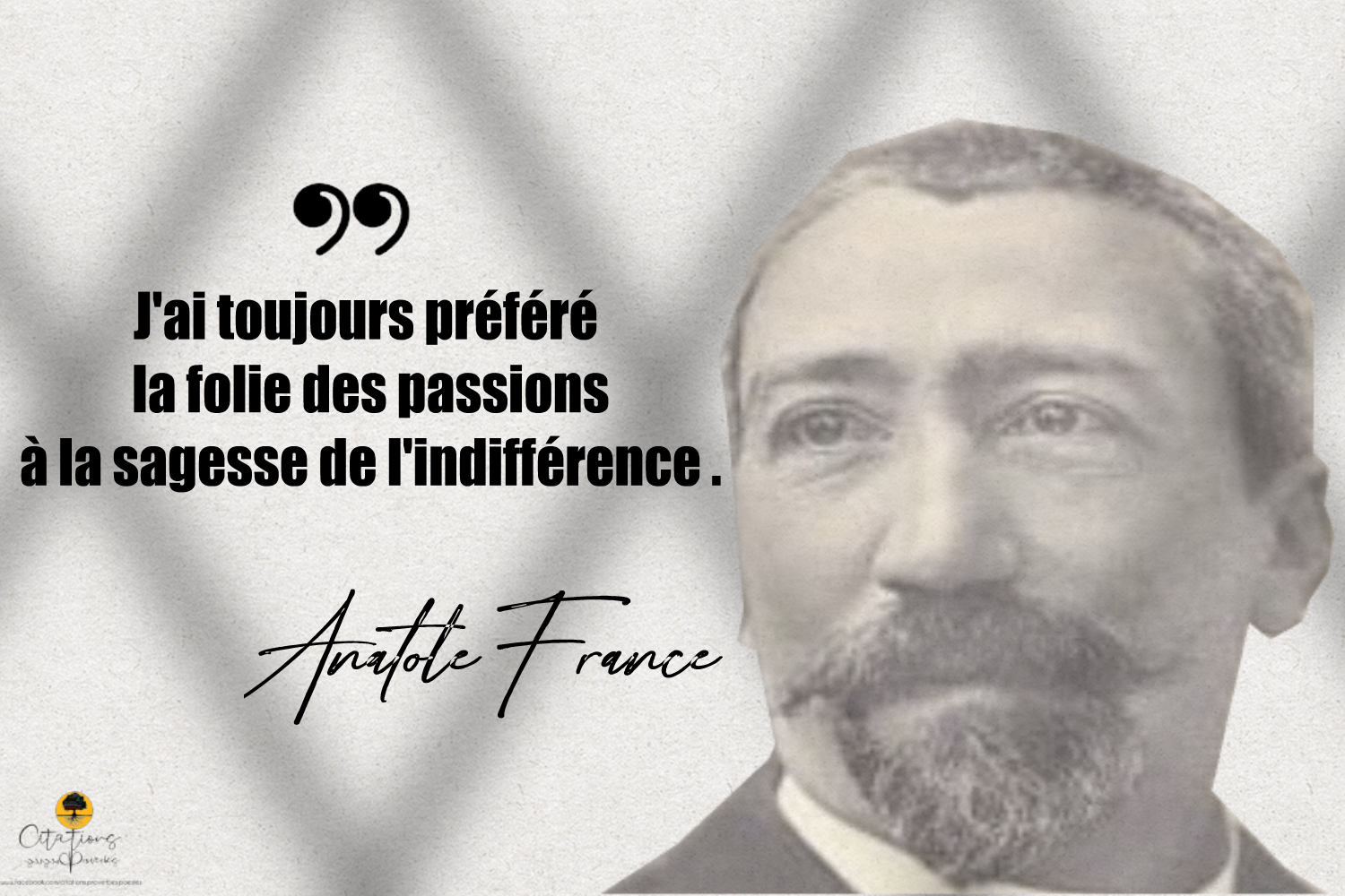 Citations J’ai toujours préféré la folie des passions….. 185 Share J’ai toujours préféré la folie des passions à la sagesse de l’indifférence . Anatole France 185 Share