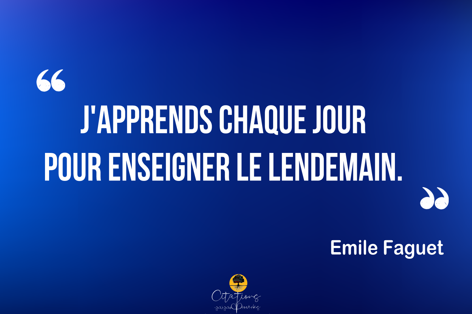 Citations J’apprends chaque jour pour enseigner le lendemain. 37 Share J’apprends chaque jour pour enseigner le lendemain. Emile Faguet 37 Share