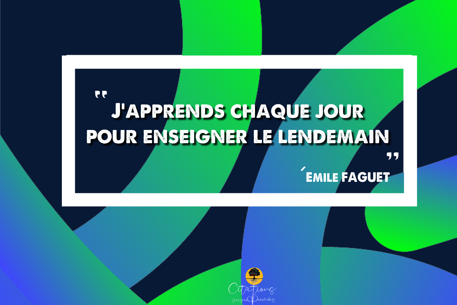 Citations J’apprends chaque jour pour enseigner le lendemain. 33 Share J’apprends chaque jour pour enseigner le lendemain Emile FAGUET 33 Share