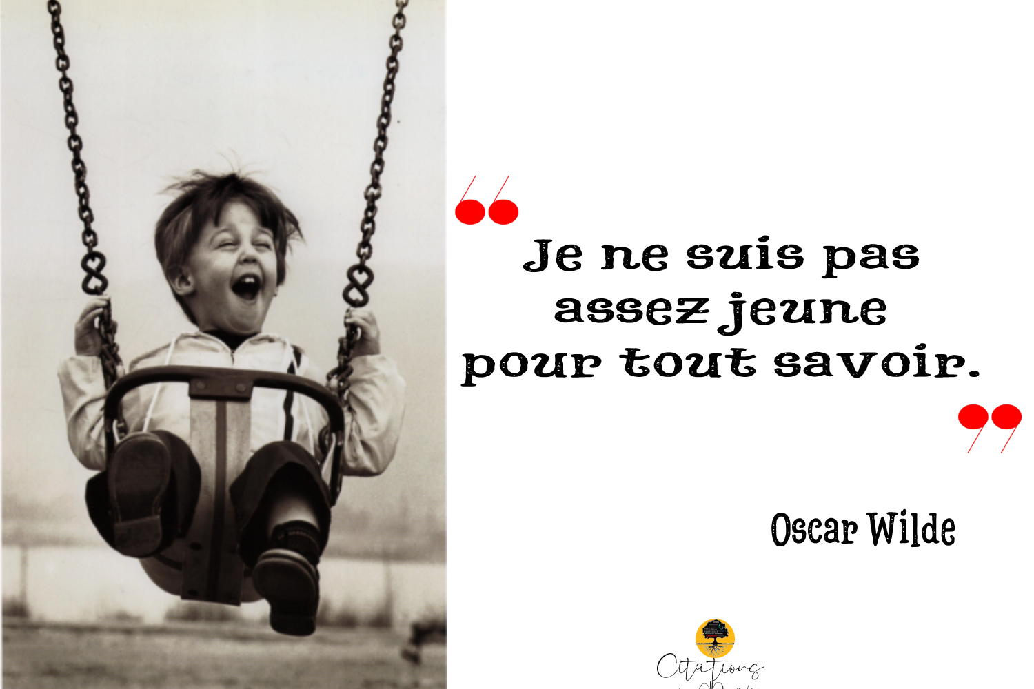 Citations Je ne suis pas assez jeune pour tout savoir. 57 Share Je ne suis pas assez jeune pour tout savoir. Oscar Wilde 57 Share