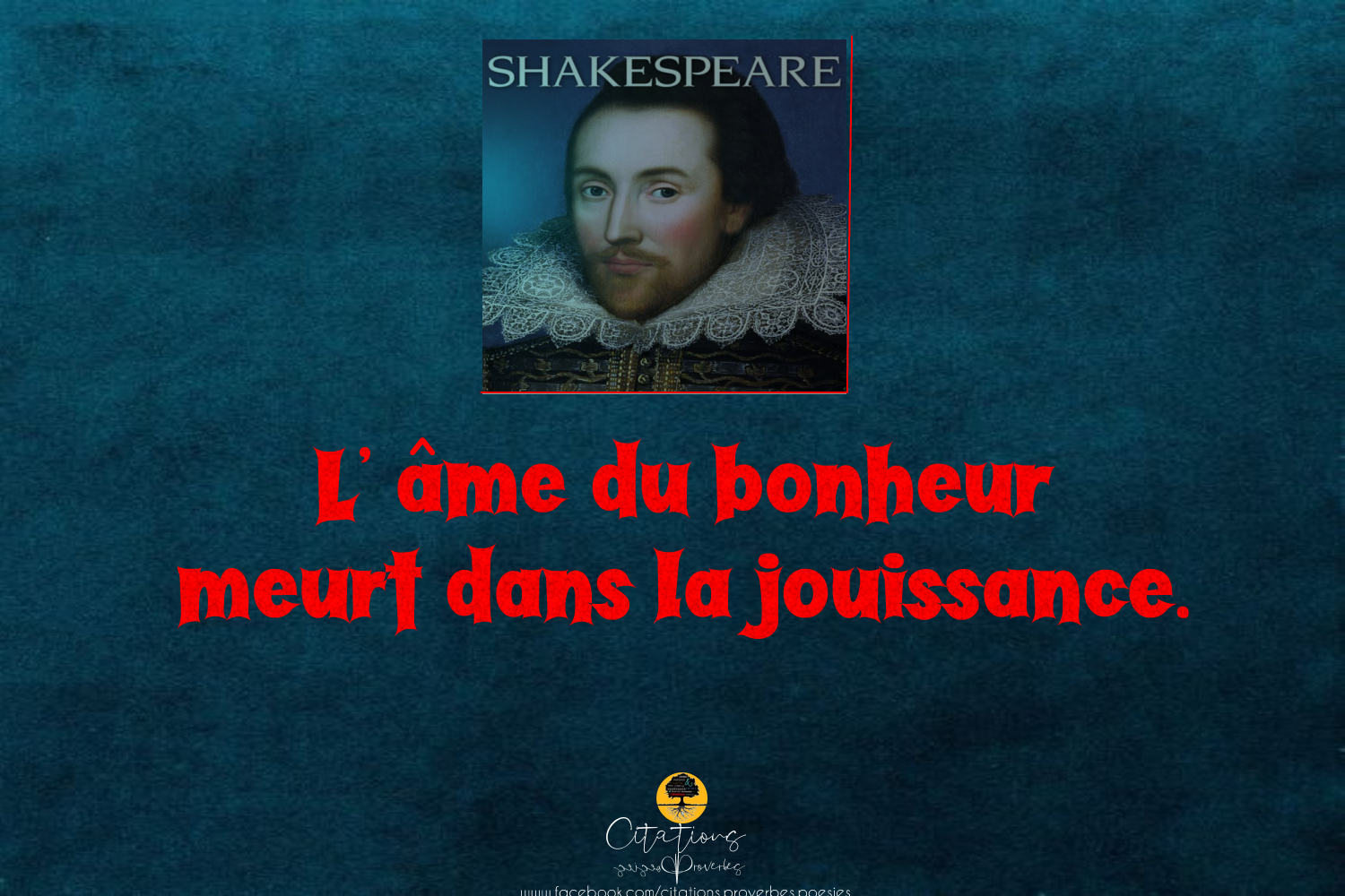 Citations L’ âme du bonheur meurt dans la jouissance. 32 Share L’ âme du bonheur meurt dans la jouissance. William Shakespeare 32 Share