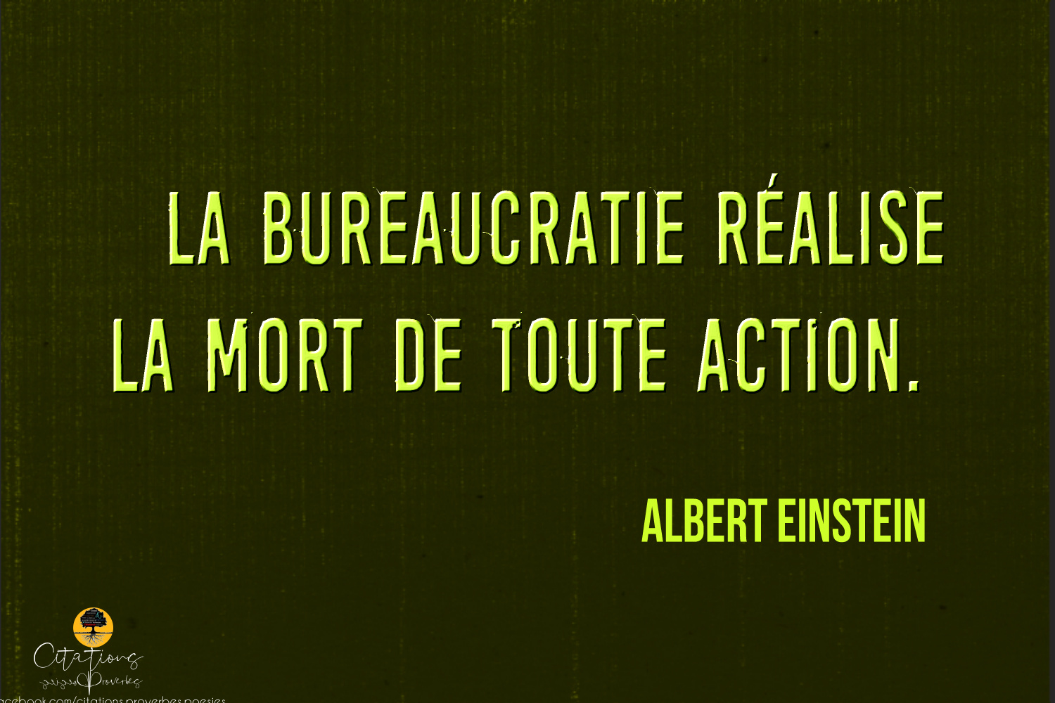 Citations La bureaucratie réalise la mort de toute action 71 Share La bureaucratie réalise la mort de toute action. Albert Einstein 71 Share