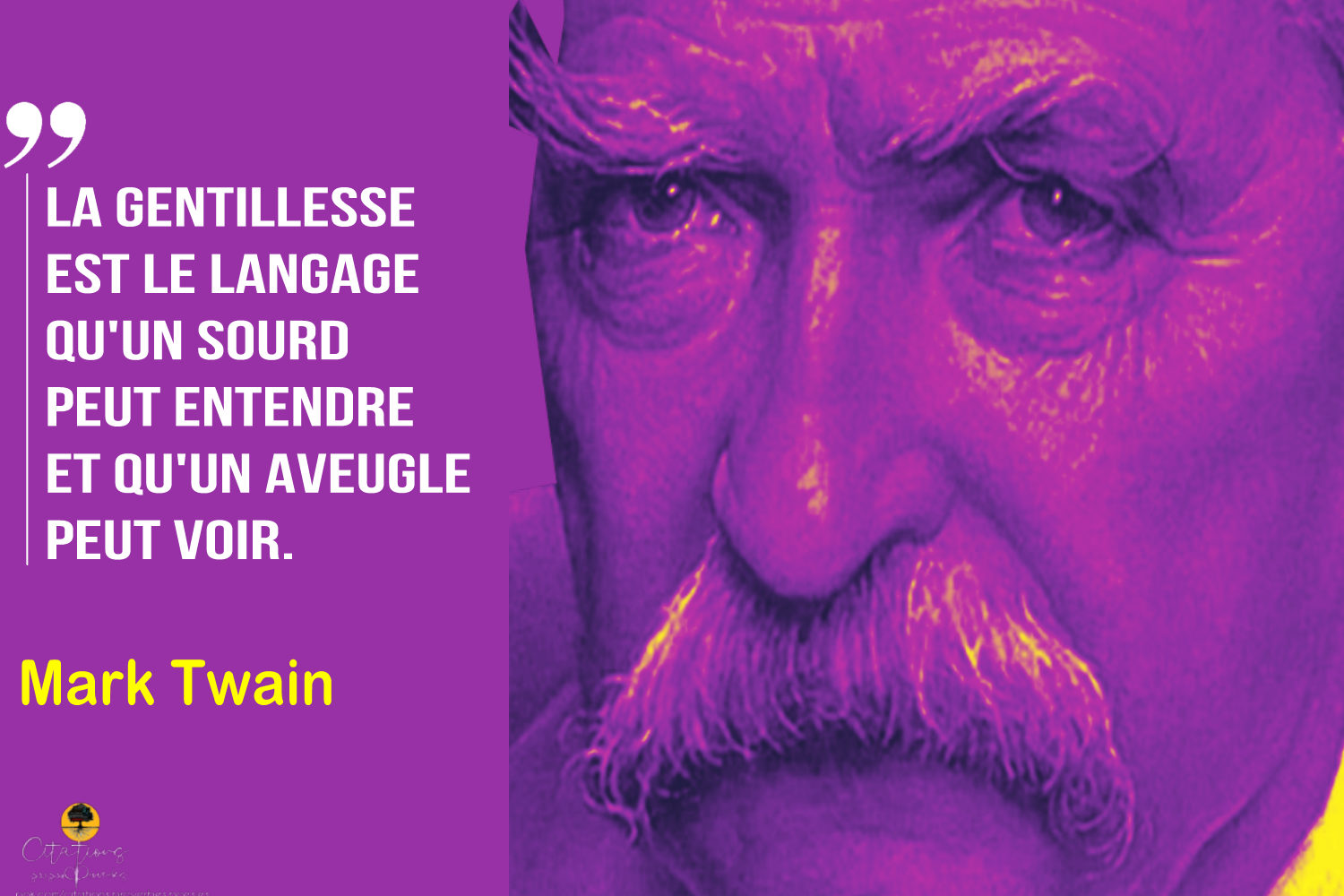 Citations La Gentillesse…..Twain 1 186 Share La gentillesse est le langage qu’un sourd peut entendre et qu’un aveugle peut voir. Mark Twain 1 186 Share