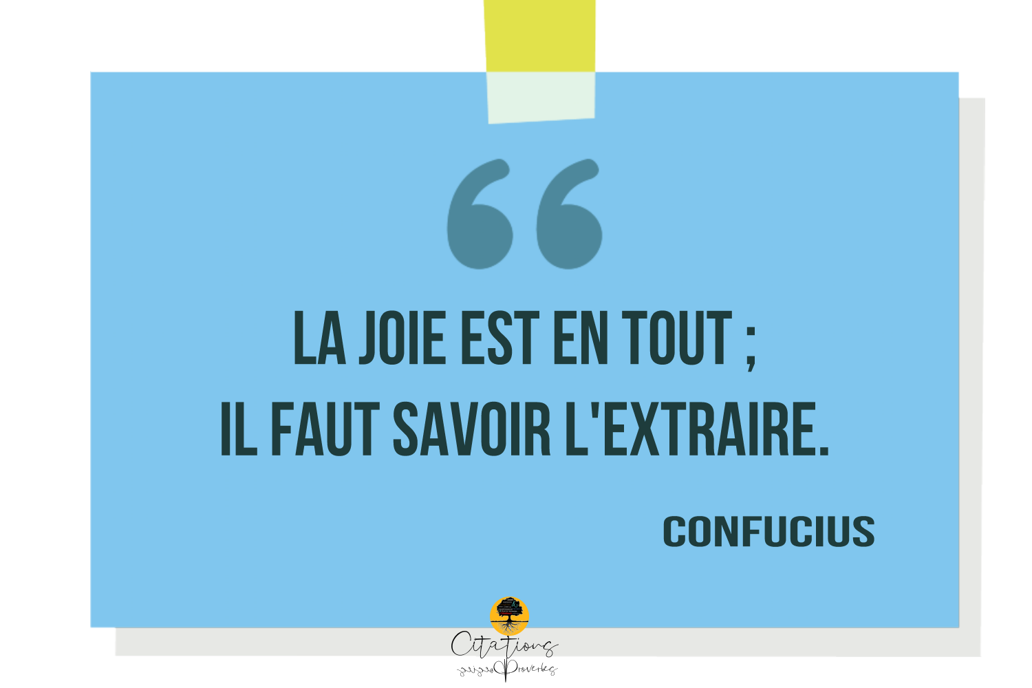 Citations La joie est en tout ; il faut savoir l’extraire. 35 Share La joie est en tout ; il faut savoir l’extraire. Confucius 35 Share