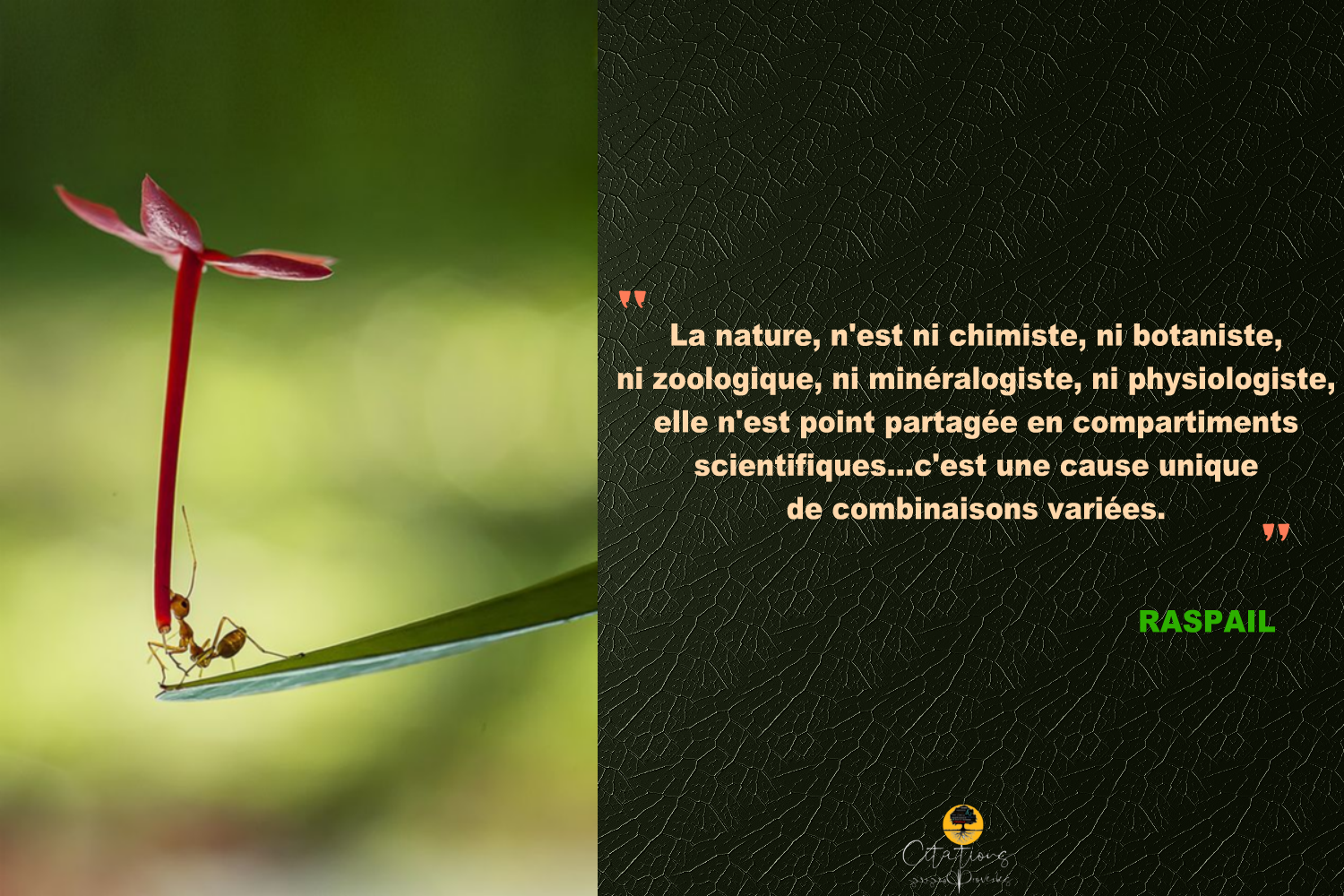 La nature, n’est ni chimiste, ni botaniste,
