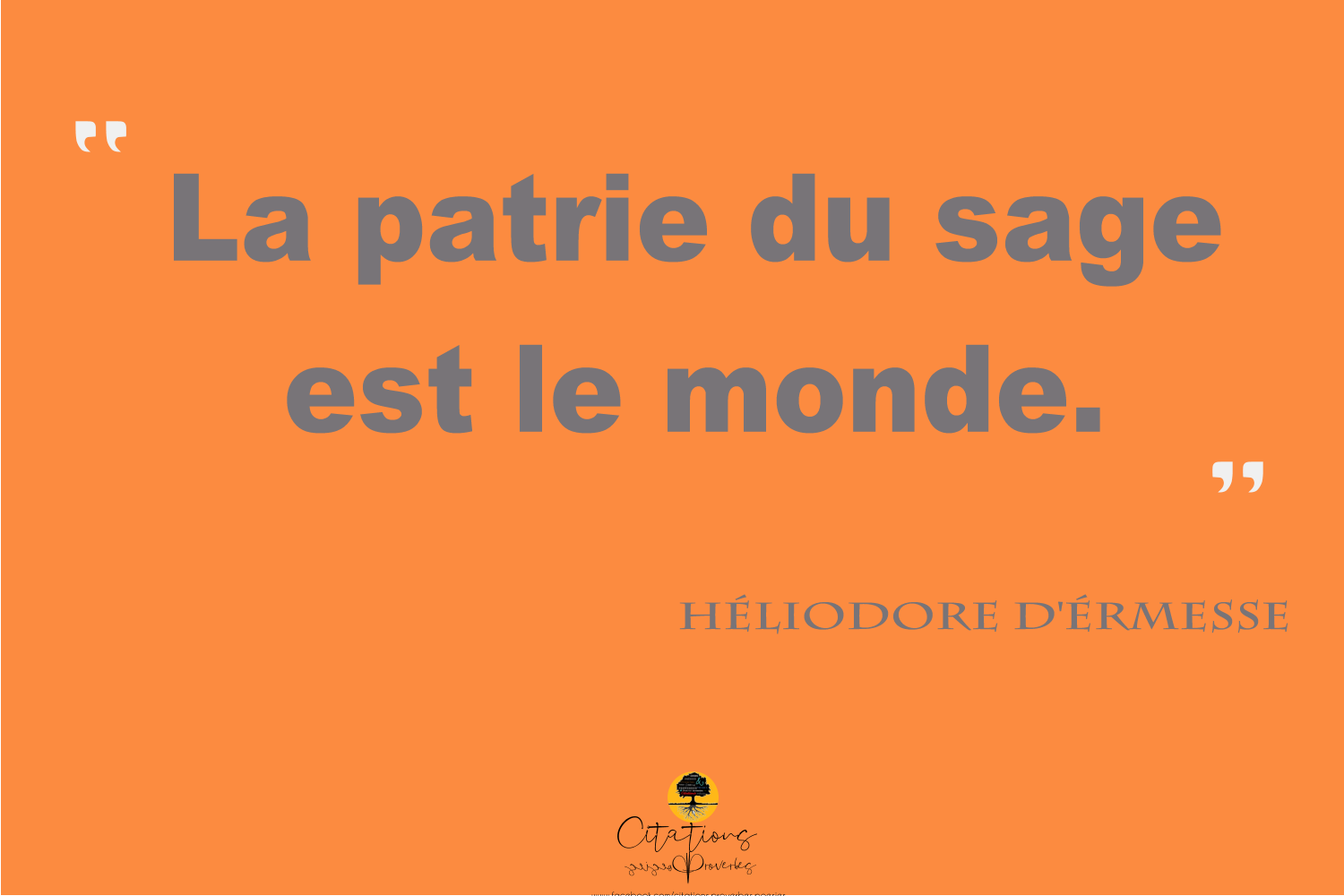 Citations La patrie du sage est le monde. 26 Share La patrie du sage est le monde. Héliodore D’érmesse 26 Share