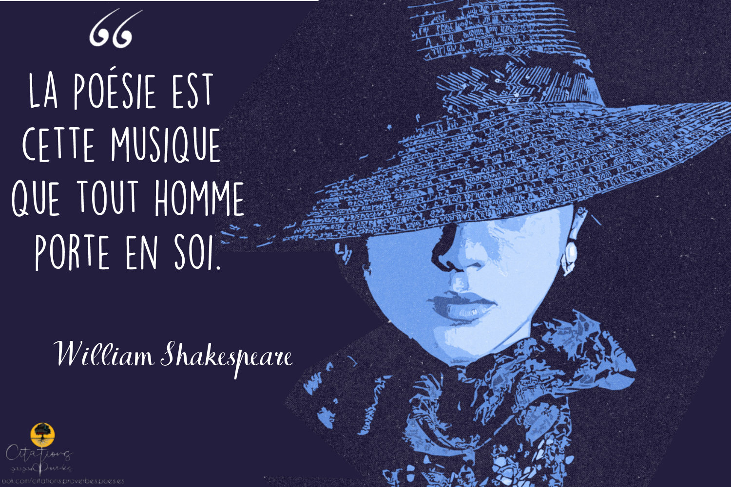 Citations La poésie est cette musique que tout homme porte en soi. 83 Share ” La poésie est cette musique que tout homme porte en soi.” William Shakespeare 83 Share