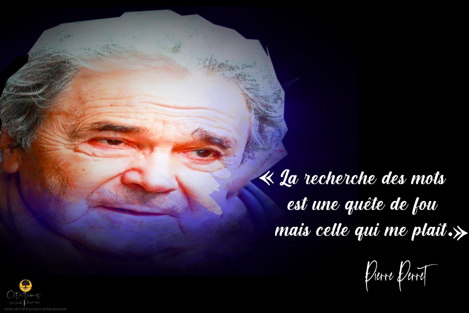 Citations La recherche des mots…..Pierre Perret 2 302 Share La recherche des mots est une quête de fou mais celle qui me plaît. 2 302 Share