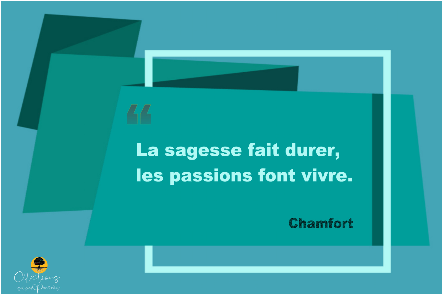 Citations La sagesse fait durer, les passions font vivre. 128 Share La sagesse fait durer, les passions font vivre. CHAMFORT 128 Share