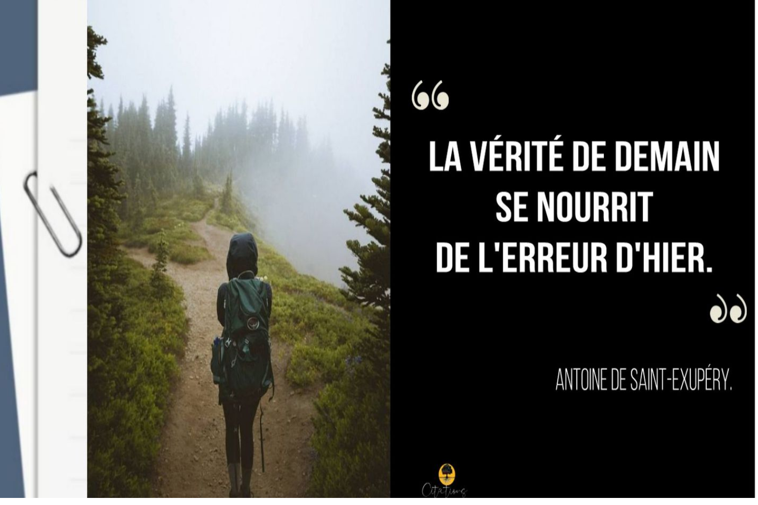 Citations La vérité de demain se nourrit de l’erreur d’hier. Antoine de Saint-Exupéry. 37 Share ” La vérité de demain se nourrit de l’erreur d’hier. ” Antoine de Saint-Exupéry. 37 Share