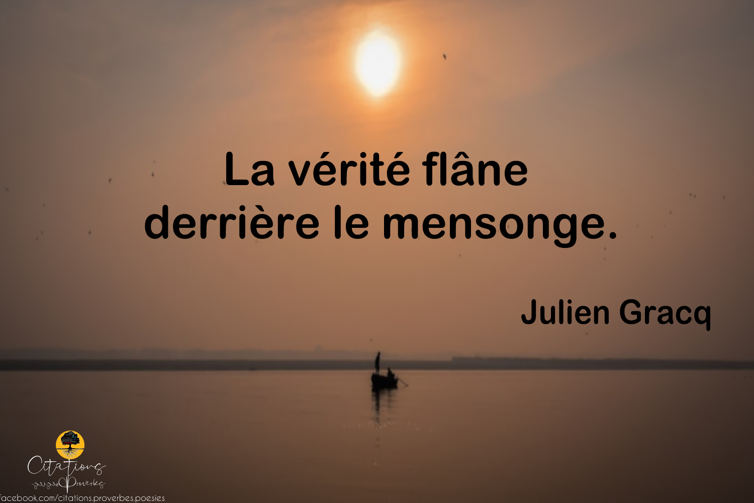 Citations La vérité flâne derrière le mensonge. 308 Share La vérité flâne derrière le mensonge. Julien Gracq 308 Share