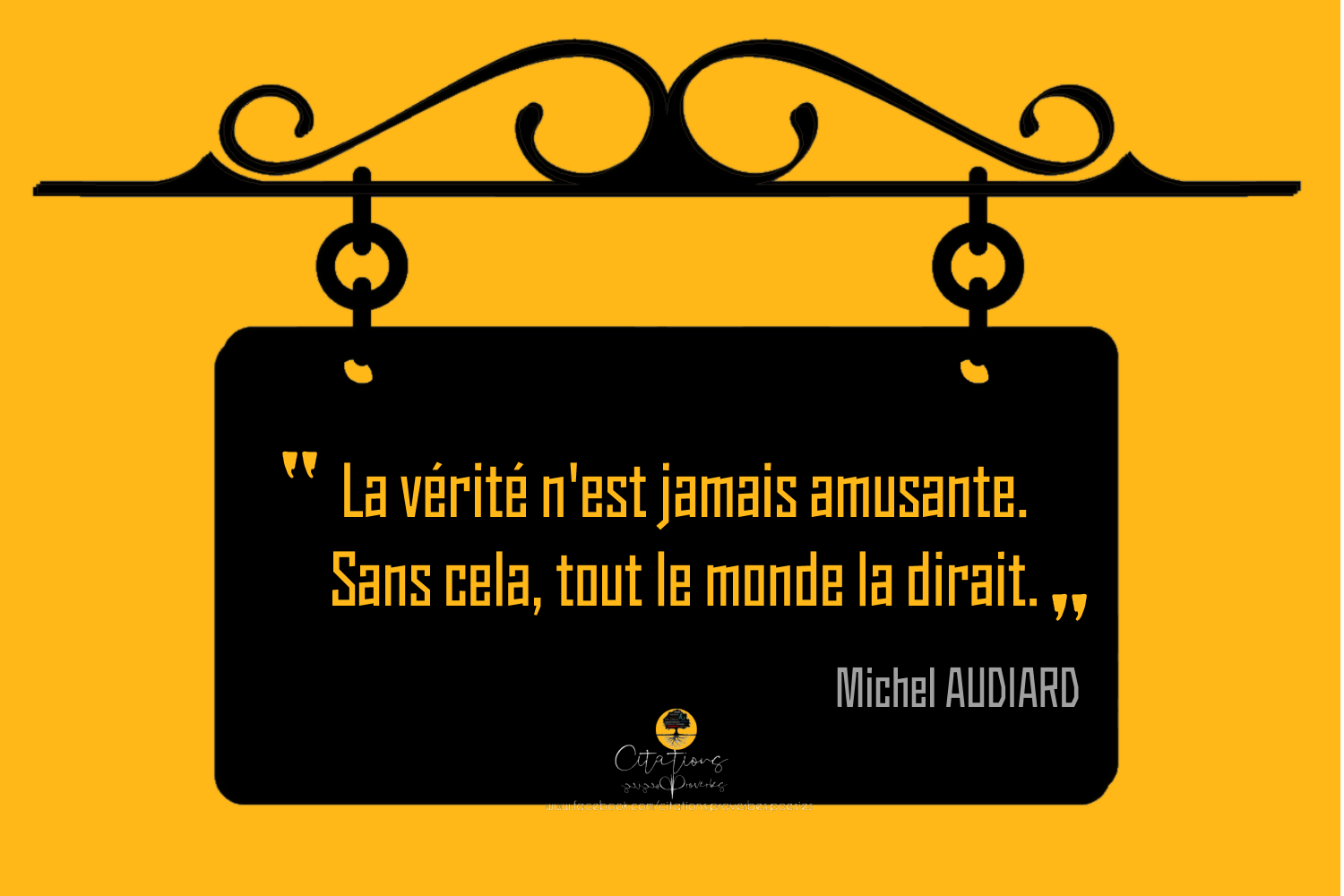 Citations La vérité n’est jamais amusante. Sans cela, tout le monde la dirait. 41 Share La vérité n’est jamais amusante. Sans cela, tout le monde la dirait. Michel AUDIARD 41 Share
