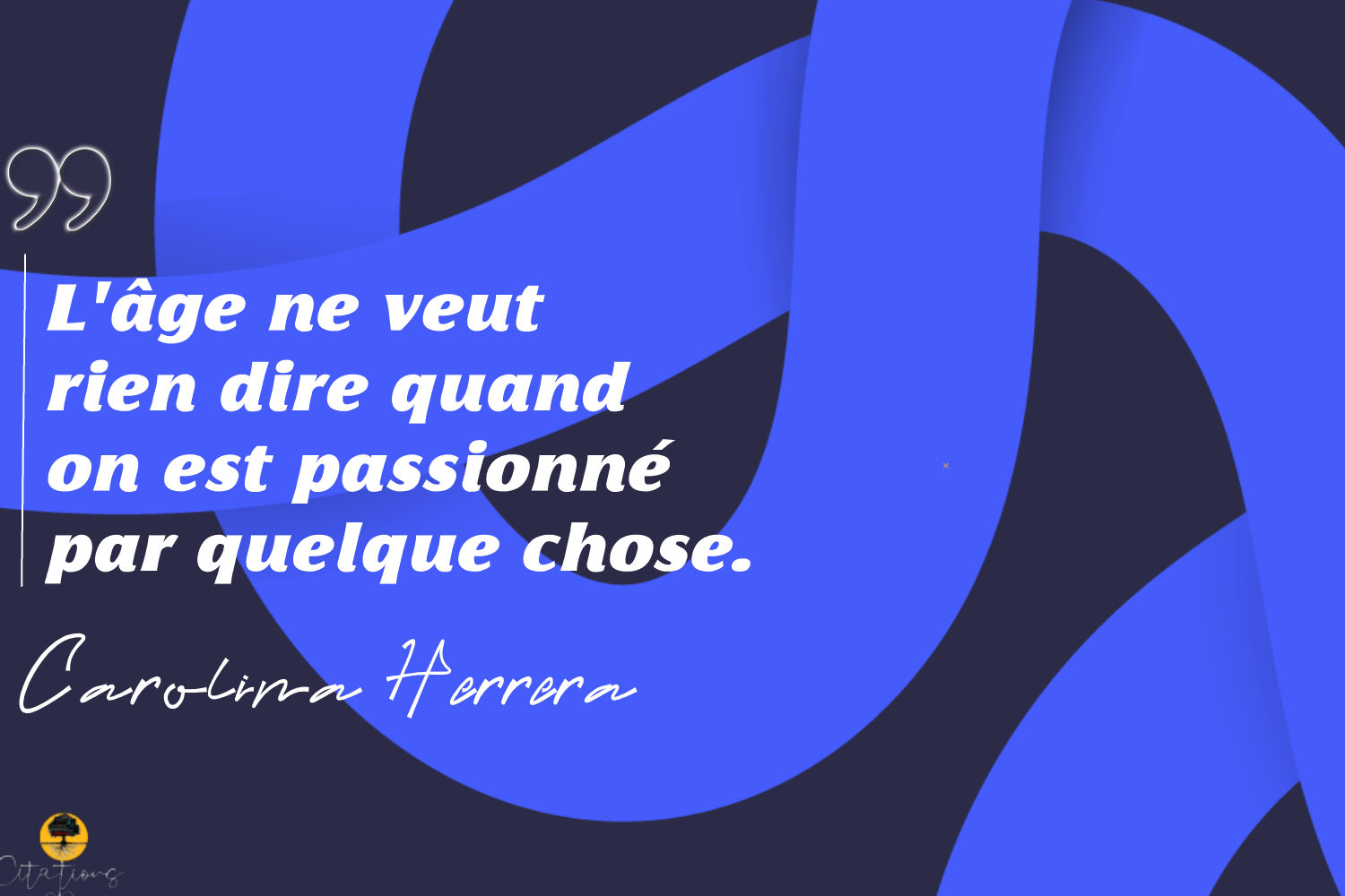Citations L’âge ne veut rien dire quand on est passionné par quelque chose. 19 Share ” L’âge ne veut rien dire quand on est passionné par quelque chose.” Carolina Herrera 19 Share