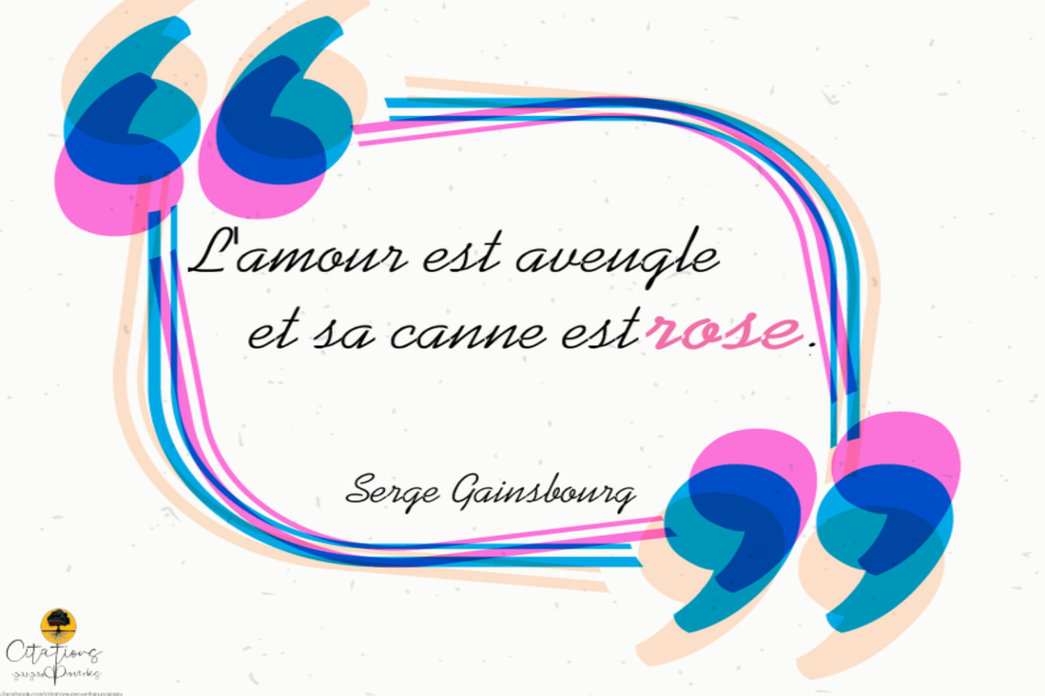 Citations ”L’amour est aveugle et sa canne est rose.” -Serge Gainsbourg 68 Share ‘ L’amour est aveugle et sa canne est rose.” Serge Gainsbourg 68 Share