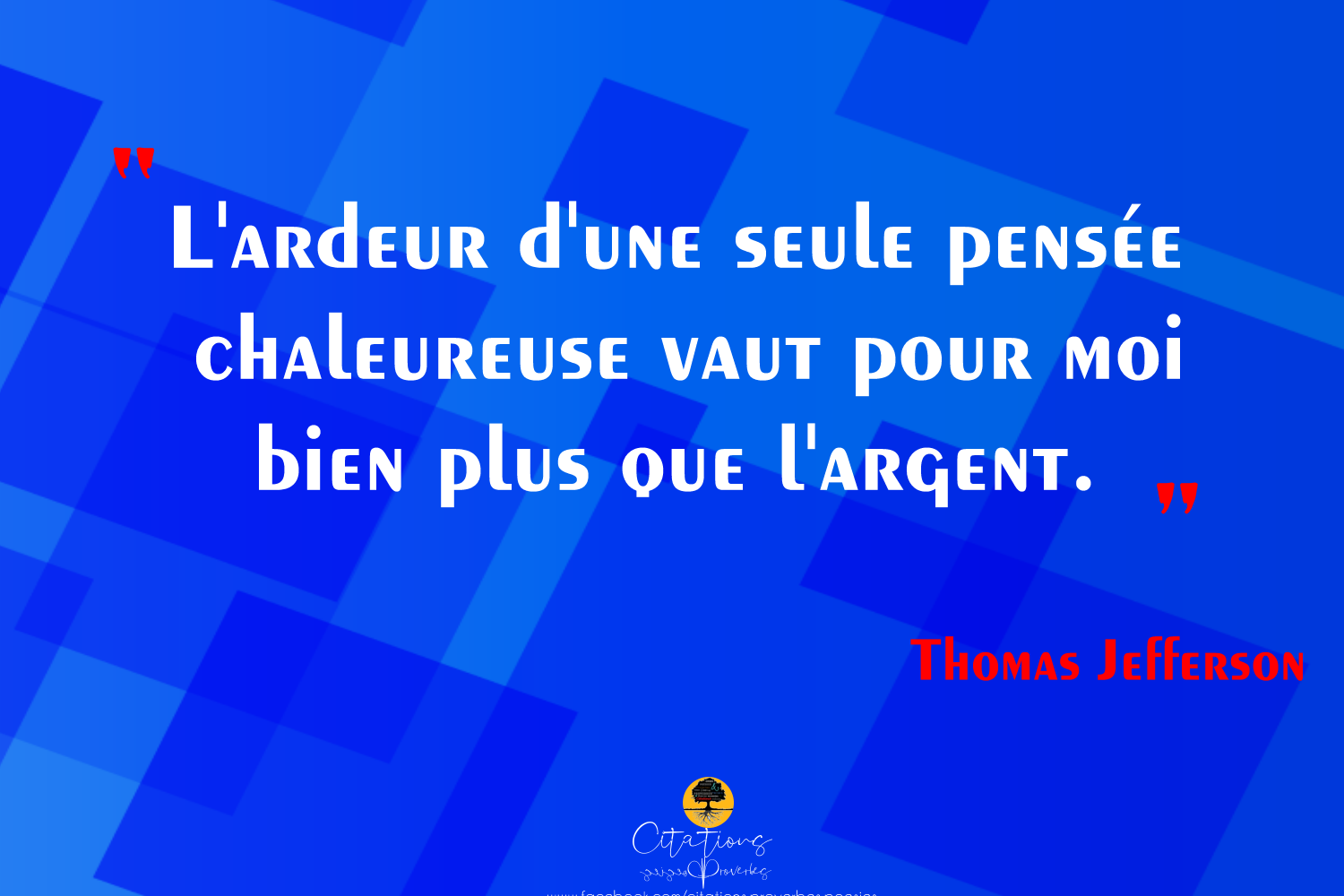 L’ardeur d’une seule pensée chaleureuse vaut pour moi bien plus que l’argent.