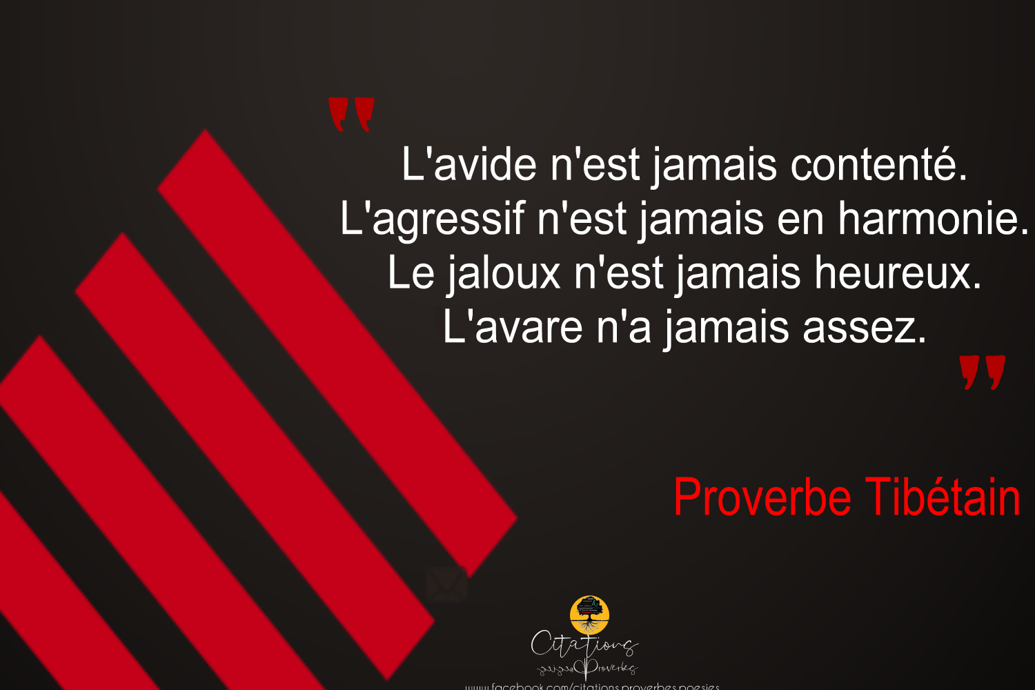 L’avide n’est jamais contenté. L’agressif n’est jamais en harmonie…