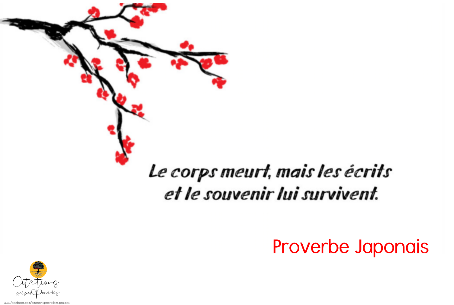 Proverbes Le corps meurt , mais les écrits et le souvenir lui survivent. 68 Share Le corps meurt , mais les écrits et le souvenir lui survivent. Proverbe Japonais 68 Share