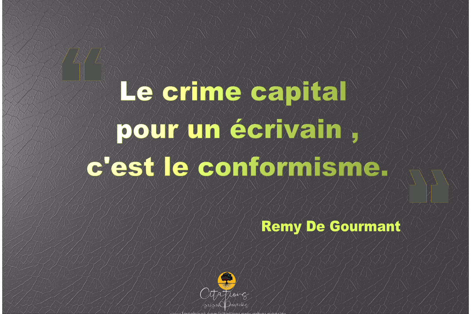 Citations Le crime capital pour un écrivain , c’est le conformisme. 40 Share Le crime capital pour un écrivain , c’est le conformisme. Remy De Gourmant 40 Share