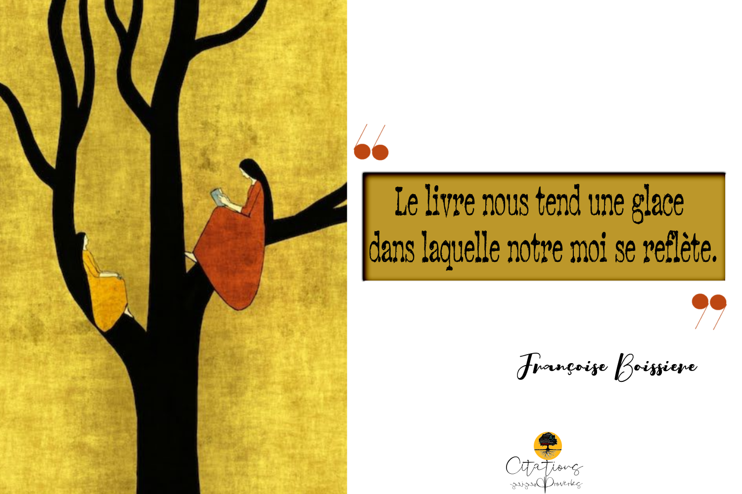 Citations Le livre nous tend une glace dans laquelle notre moi se reflète. 23 Share Le livre nous tend une glace dans laquelle notre moi se reflète. Françoise Boissiere 23 Share