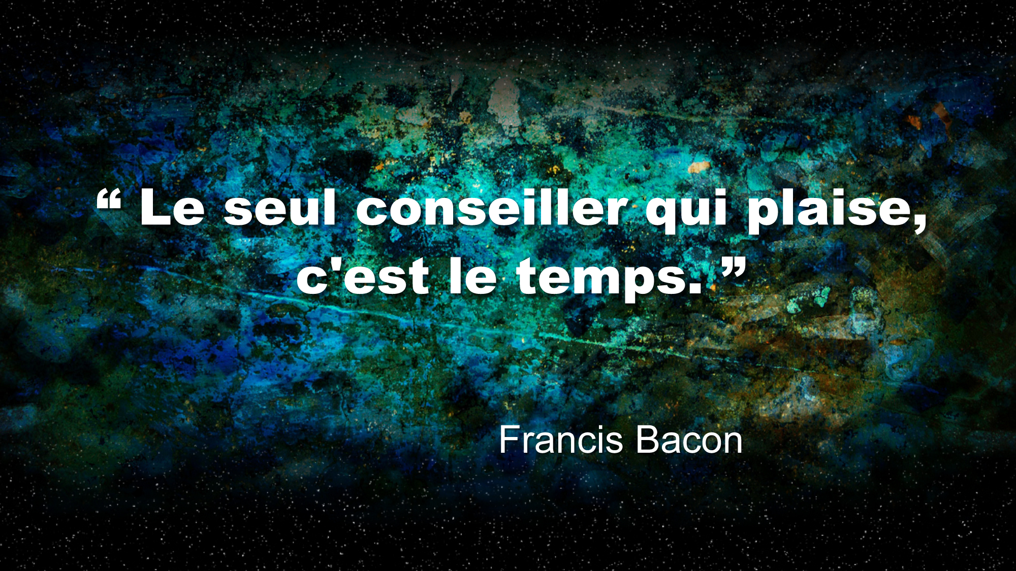 Citations Le seul conseiller qui plaise , c’est le temps. 177 Share Le seul conseiller qui plaise , c'est le temps. Francis Bacon 177 Share