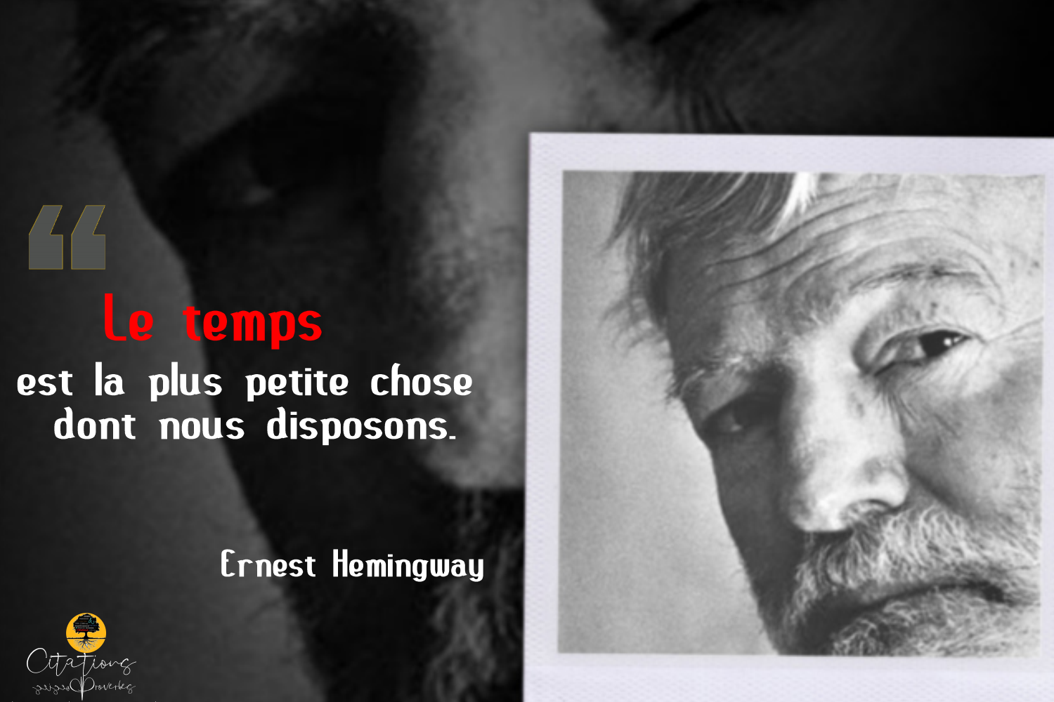 Citations Le temps est la plus petite chose dont nous disposons. 50 Share Le temps est la plus petite chose dont nous disposons. Ernest Hemingway 50 Share